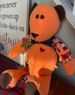 Mary Rose D. had a memory bear made from her husband's sweatshirt for her grandson ,born in 2018. "Every month we've taken a picture with "Poppy" bear. Time sure flies but bears last forever!"